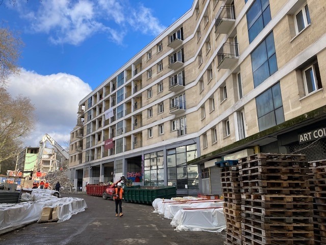 Le sujet du réemploi et de l’impact carbone est au cœur de ce projet de réhabilitation/construction. Chaque pierre est retirée puis stockée avant son départ pour l’usine de traitement.